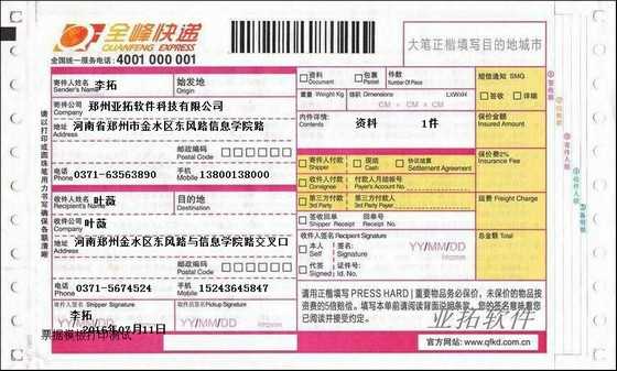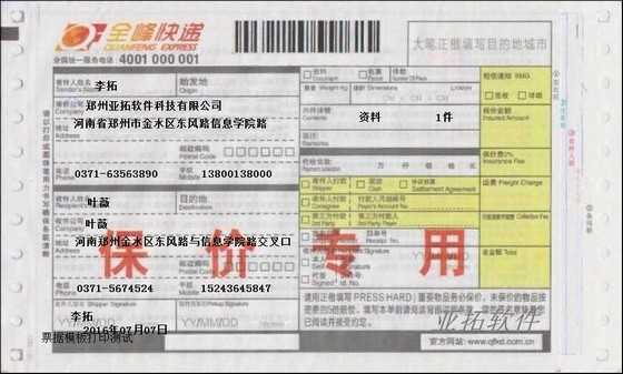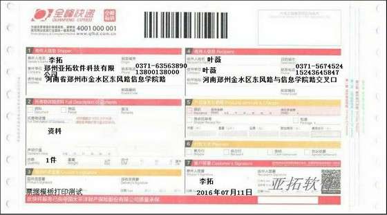 • 全峰快遞打印模板