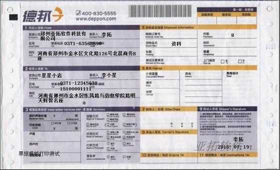 • 德邦快遞打印模板