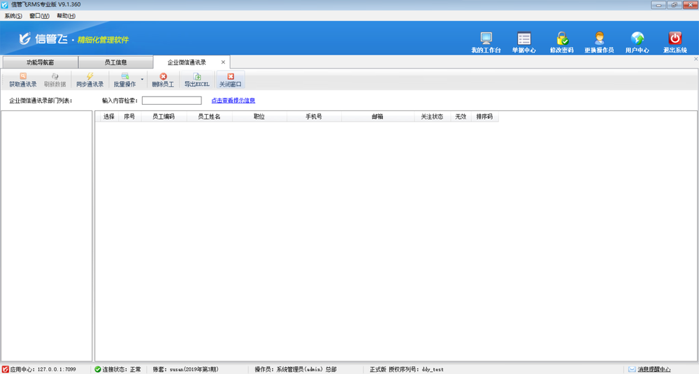 同步部門、員工信息到企業微信通訊錄,可以對企業微信中的通訊錄進行維護。