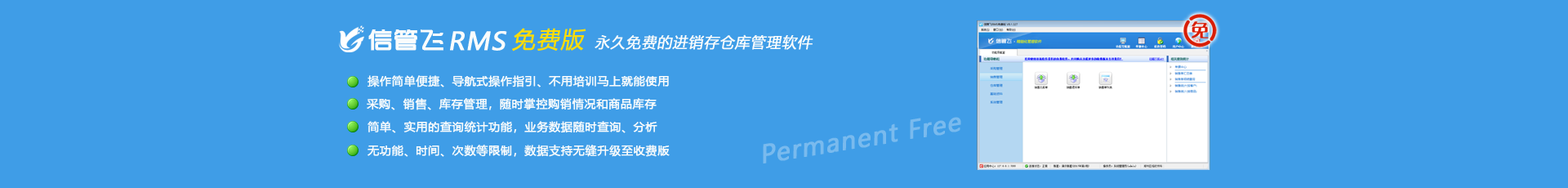 信管飛RMS免費版是亞拓軟件開發的一款功能簡單、實用的入門級進銷存軟件,軟件主要包括采購管理、銷售管理、倉庫管理功能,可以方便的管理業務和倉庫庫存。軟件運行穩定、數據安全可靠,并可在業務發展壯大時,升級到收費版本的亞拓管理軟件。軟件永久免費,軟件中提供的功能永久使用,沒有功能和數量限制。