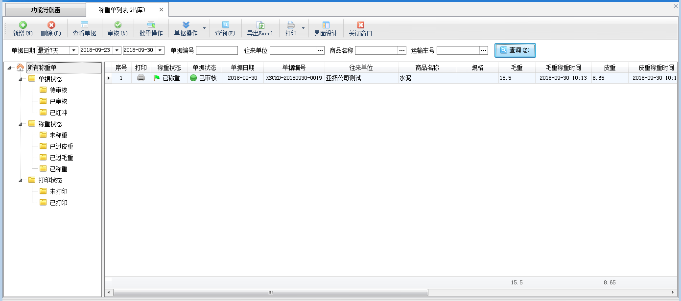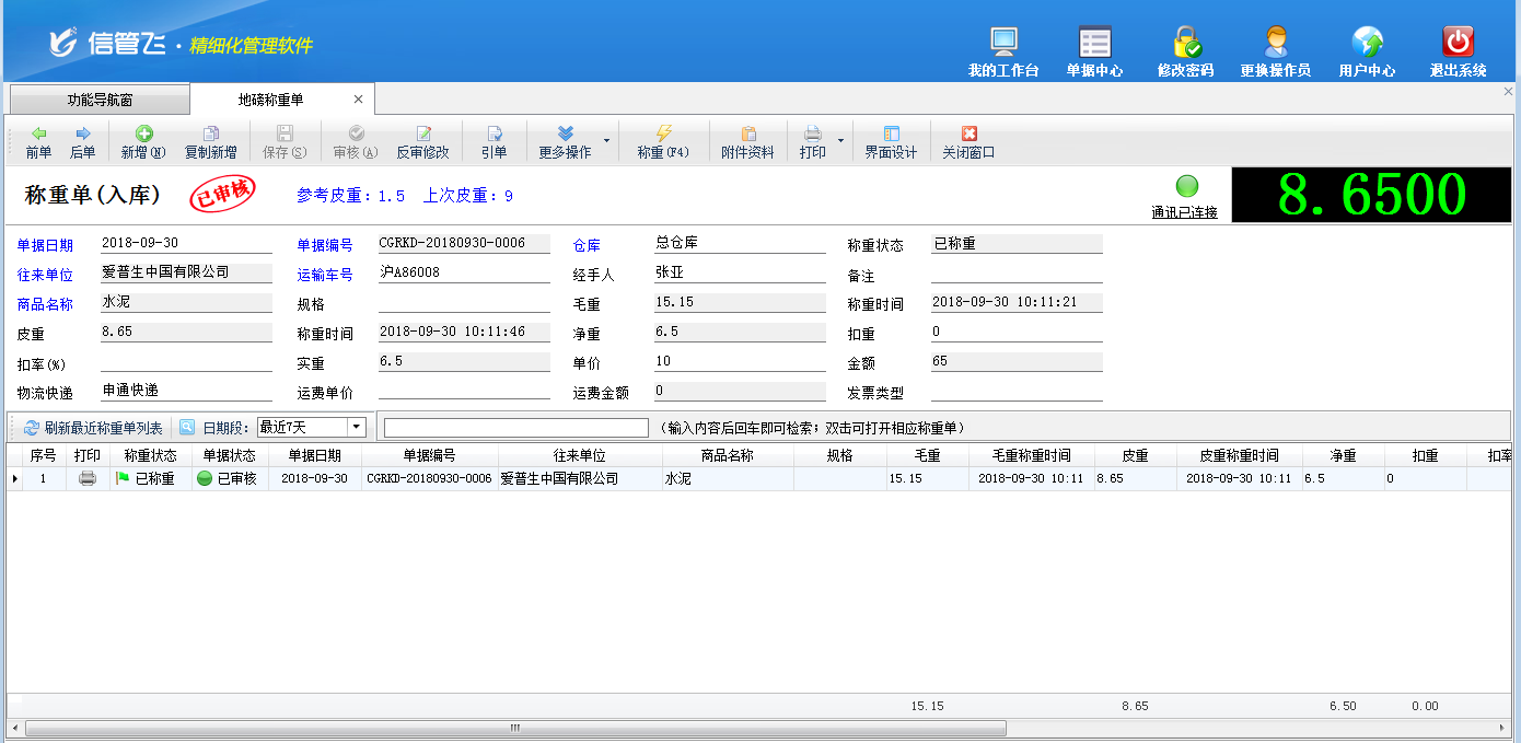 地磅稱重的典型功能截圖如下: