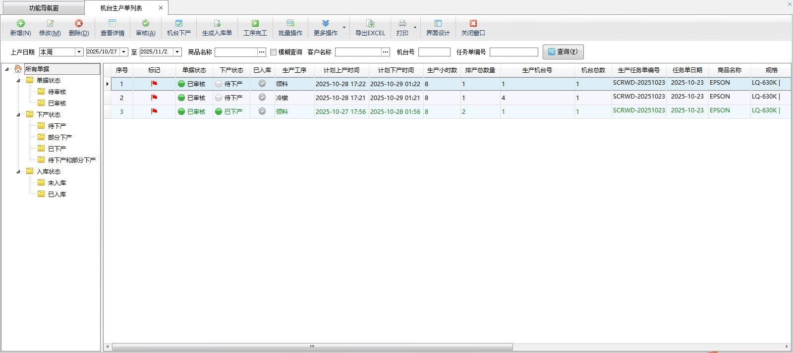 審核:選擇機臺生產單記錄后,點擊“審核”按鈕,可以審核相應的生產單記錄。