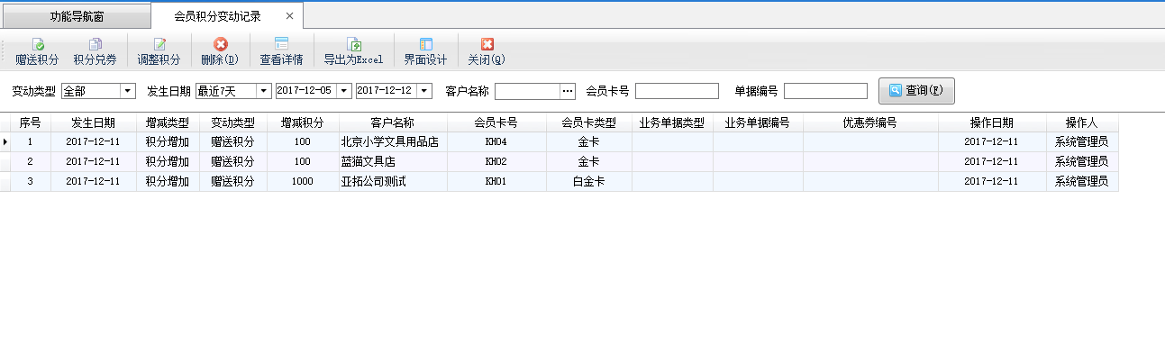 | 5 | 贈送積分 | 可以對積分卡進行贈送積分。 |
