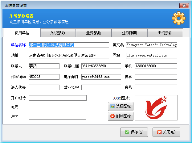 使用單位信息:其中單位名稱為必填項(xiàng),其他項(xiàng)目可根據(jù)需要進(jìn)行選填。在打印格式模板(如抬頭的單位名稱、地址等)中可以引用這些信息,后續(xù)公司名稱、地址變更時,不用再修改每個打印格式模板。