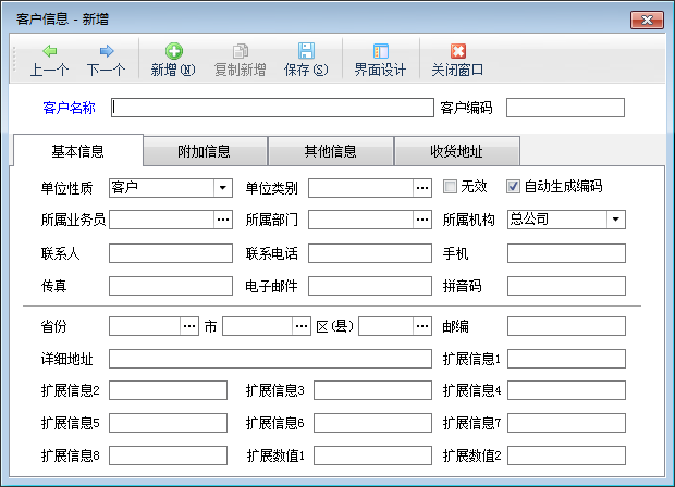 ????客戶資料中除客戶名稱外,其他數(shù)據(jù)項(xiàng)可按實(shí)際需要選填。