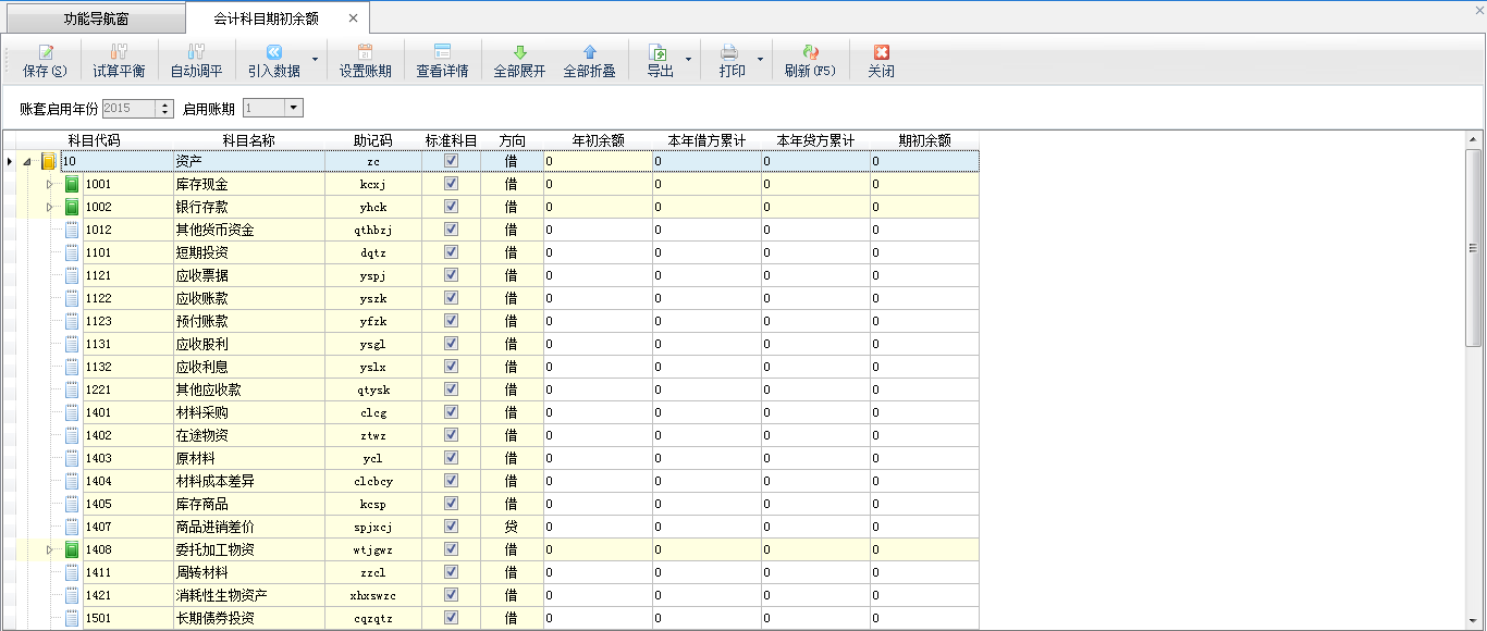 期初開賬:設(shè)定啟用軟件時間(即開賬日期);