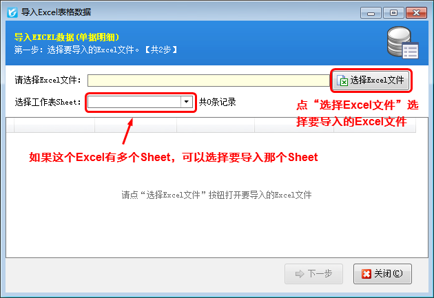 ????①方式一:點(diǎn)“導(dǎo)入導(dǎo)出”—》“從Excel導(dǎo)入明細(xì)”,彈出“導(dǎo)入Excel數(shù)據(jù)”窗口,導(dǎo)入方式“直接選擇Excel文件”,如下圖所示:
