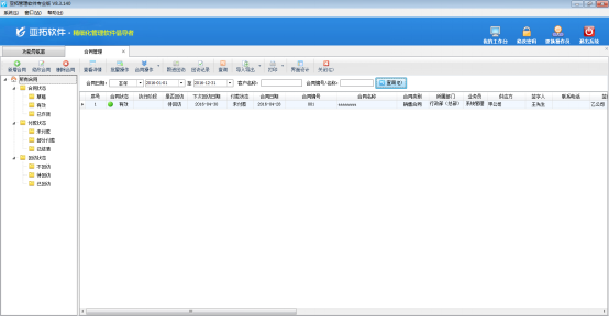 ????合同管理是屬于客戶關系管理模塊,客戶關系管理模塊是屬于擴展模塊,只有在亞拓管理軟件標準版和專業版中才能使用,下面我們來演示一下具體的操作步驟。