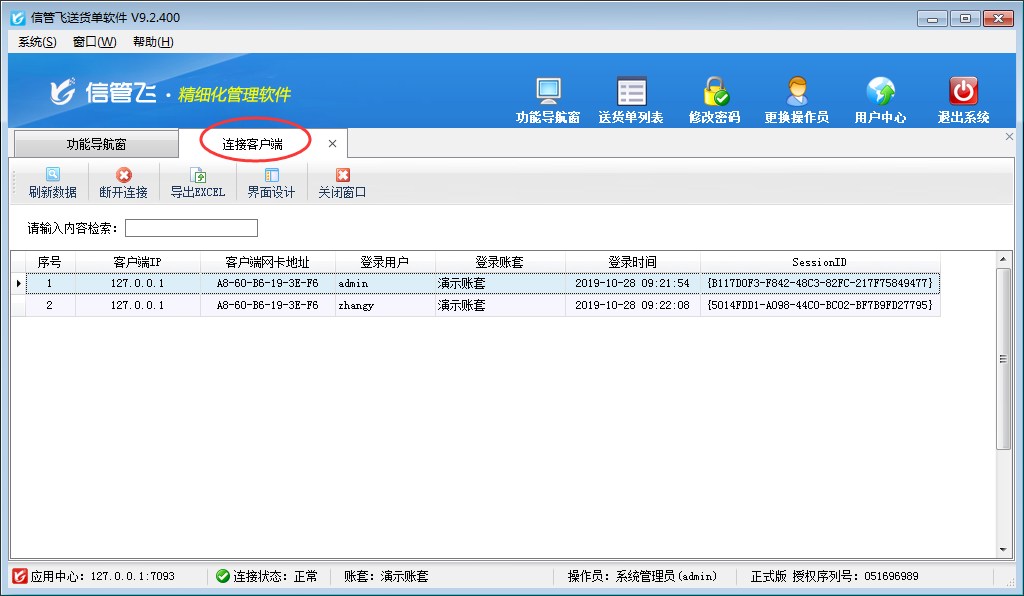 ????信管飛RMS、信管飛送貨單軟件、信管飛出納記賬軟件、信管飛倉庫管理軟件等都支持免費下載安裝試用。試用版本中會存在一個演示賬套。演示賬套中有演示數據,方便試用軟件功能(賬套即賬套數據庫,這是一個會計業務引申出來的概念,賬套數據庫中存儲業務數據)。如后續購買為正式版本,可以繼續使用演示賬套。為了區分賬套數據,軟件支持修改賬套的名稱。