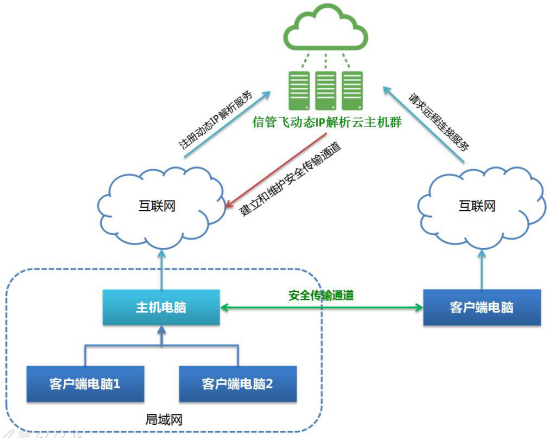 ????如果客戶端電腦和主機電腦不在一個局域網,可另外購買一個增值服務,動態ip解析服務,購買后分配動態ip解析服務賬號,在主機電腦上配置后,客戶端電腦即可使用解析賬號遠程連接主機電腦登錄軟件。