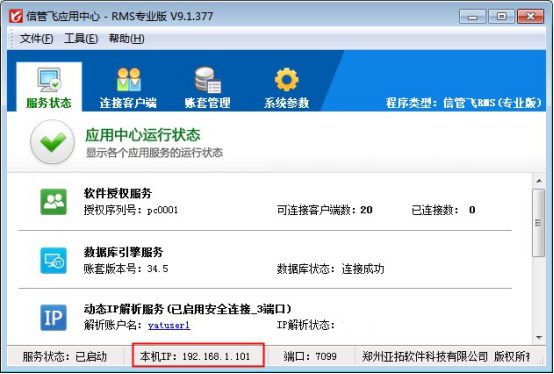 ????動態IP解析服務是亞拓軟件開發的基于互聯網的遠程連接解決方案,采用專屬安全技術,可以支持網絡版本在異地連接主機電腦進行共享數據使用。動態IP解析服務是增值服務,需要購買后分配賬號和密碼。如果客戶解析服務到期無法使用且到期更換為一個網絡下使用軟件,則不需要續費和連接動態IP解析服務的賬號登錄,直接連接本地的主機電腦的應用中心程序的IP地址進行使用。本文以信管飛RMS軟件進行示范動態IP解析服務更換為本地使用如何操作?