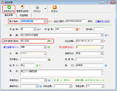 # 6.9.9 出納記賬軟件中員工借款如何轉記憑證?
