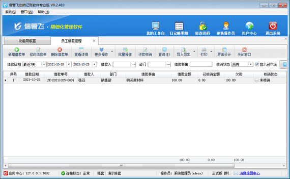 ????歡迎下載試用這款支持員工借款及還款管理的出納記賬軟件:信管飛出納記賬軟件。