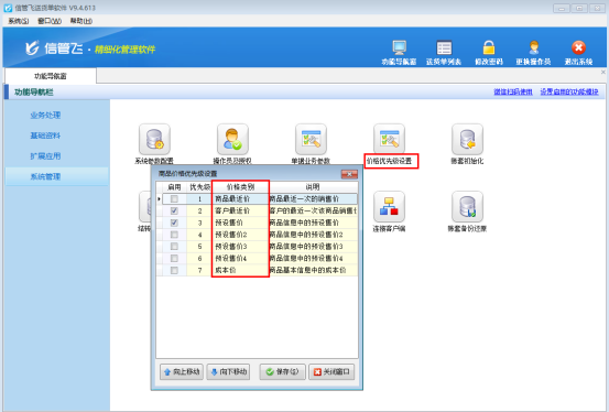 在快節奏的商業環境中,時間就是效率,效率就是競爭力。送貨單軟件深諳此道,特別推出價格優先級設置功能,幫助商家快速、準確地完成開單工作,讓您的業務運作更加流暢。 在送貨單軟件的功能導航窗中,輕松點擊“系統管理”—“價格優先級設置”,即可進入價格優先級設置窗口。 啟用并排序價格策略: 在價格優先級設置窗口中,您可以勾選需要啟用的價格策略,如商品最近價、客戶最近價、商品預設售價等,并通過“向上移動”和“向下移