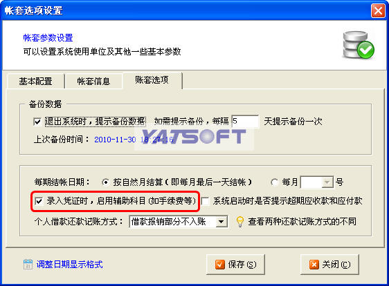 輔助科目主要為了處理類似于手續費、利息等情況,在實際入帳金額(結算金額)要扣除掉手續費,而打印單據時要顯示相應的信息。 (1)比如異地轉帳給我們3000元,其中手續費為20元,則實際到我們帳戶的金額為2980元,此時可以錄入“借方金額”為2980元,“輔助科目金額”為20元,實際結算金額為3000元。 (2)如果不啟用輔助科目,也可以填寫兩個憑單。比如上面的例子,可以先錄入一個3000元的借方,然后在錄入一個20元的貸方。(一)開啟輔助科目的方法: 在主窗口菜單“系統管理”->“帳套選項設置”