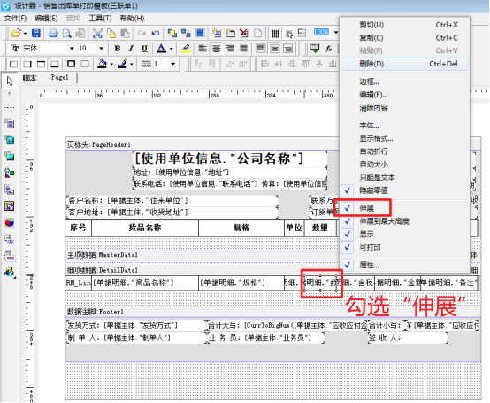 信管飛軟件具備強(qiáng)大的單據(jù)打印功能,不僅支持用戶打印單據(jù)內(nèi)容,還支持用戶根據(jù)自身需求自定義打印模板,靈活滿足多樣化的業(yè)務(wù)場(chǎng)景。不過(guò),在實(shí)際使用過(guò)程中,有部分用戶反饋,在進(jìn)行打印預(yù)覽操作時(shí),出現(xiàn)了單據(jù)中部分明細(xì)內(nèi)容的文本框無(wú)法完整顯示的問(wèn)題,本篇文章介紹下如何解決? 新增單據(jù),打印預(yù)覽界面如下: 解決方法如下:開(kāi)單界面,點(diǎn)打印-打印格式設(shè)計(jì),設(shè)計(jì)格式,進(jìn)入模板設(shè)計(jì)器界面,依次選中“數(shù)量”“金額”文本框,鼠標(biāo)右鍵把“伸展”勾選上,如圖: &nbs