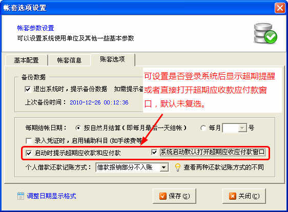 1、增加登錄后可直接打開超期應(yīng)收款和應(yīng)付款功能,另外也可以彈出右下角提醒窗口。(具體可以在賬套選項(xiàng)設(shè)置中進(jìn)行設(shè)置)