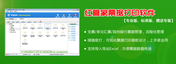紅管家票據(jù)打印軟件是亞拓軟件針對(duì)企事業(yè)單位票據(jù)管理及打印需求而開(kāi)發(fā)的一款票據(jù)管理軟件(票據(jù)通軟件、支票打印軟件、快遞單打印軟件、萬(wàn)能打印軟件、套打軟件),主要包括支票管理、承兌匯票管理、其他票據(jù)管理(銀行進(jìn)賬單、電匯憑證等)、快遞單管理、萬(wàn)能票據(jù)打印、票據(jù)打印模板管理、票據(jù)查詢檢索等功能。 軟件的特色功能:(1)從票據(jù)管理的