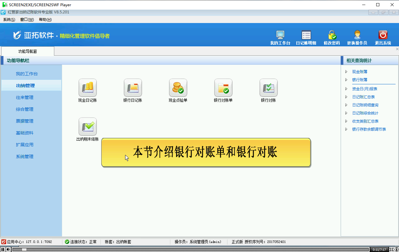介紹信管飛RMS出納管理銀行日記賬的主要功能。