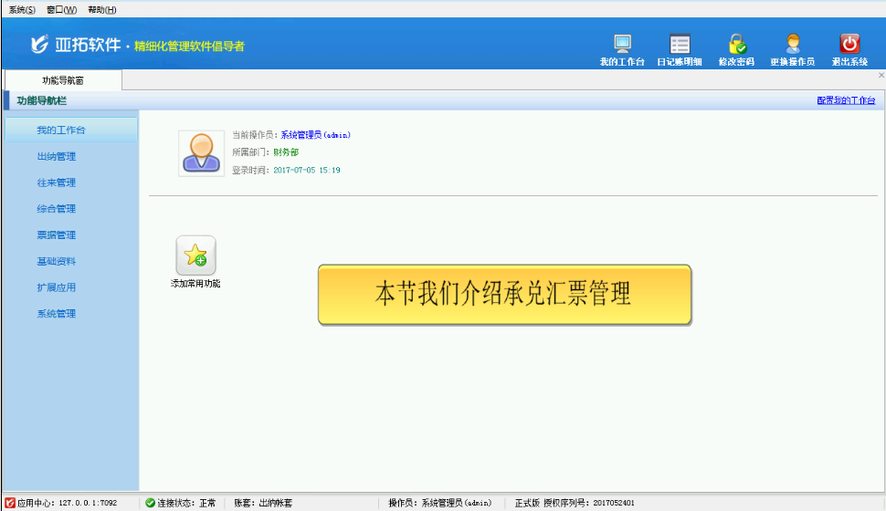 介紹信管飛出納記賬軟件承兌匯票管理的主要功能和操作步驟。