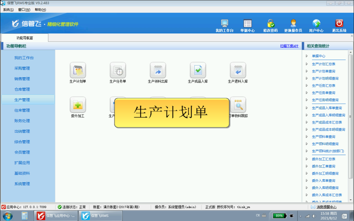 介紹信管飛RMS生產計劃單的主要功能和操作步驟。