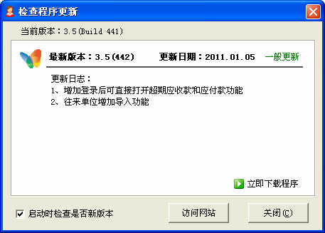 答:系統(tǒng)有自動(dòng)更新檢查功能,可以在“輔助工具”->“系統(tǒng)界面設(shè)置”功能中,復(fù)選“當(dāng)有新版本時(shí)提示”,這樣每次打開(kāi)系統(tǒng)時(shí),會(huì)自動(dòng)檢查是否有最新版本。