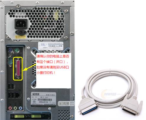 采用并口的打印機(jī),要求電腦主機(jī)上必須有25針的并口,如下圖所示: