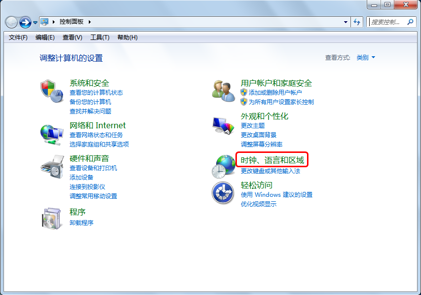 在控制面板中找到“時鐘、語言和區域”