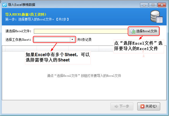 2、選擇Excel文件:一個(gè)Excel文件(工作簿)可能包括多個(gè)Sheet(工作表),軟件支持選擇導(dǎo)入不同的工作表,如下圖3所示。
