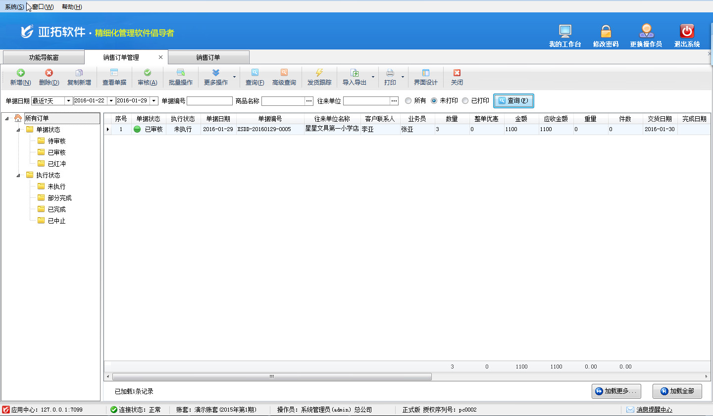 審核單據(jù):點“審核”按鈕可以審核當前選擇的訂單。