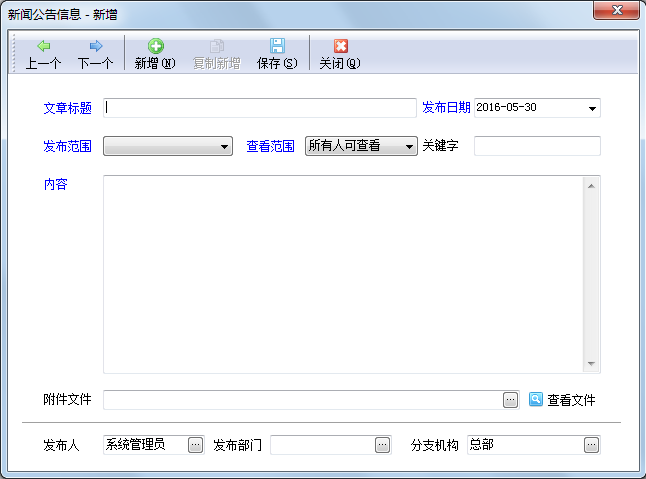 新增新聞公告信息界面