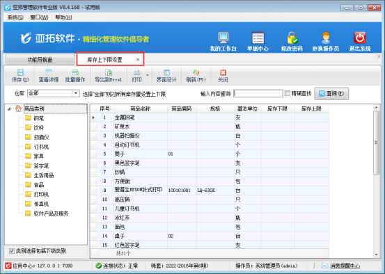 歡迎下載試用可以設(shè)置庫存上下限的進(jìn)銷存軟件亞拓管理軟件