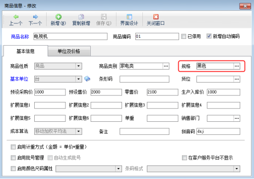 進銷存軟件如何設置在單據明細中可修改商品規格?