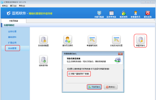 默認初始化會刪除所有業(yè)務單據(jù),我們可以根據(jù)自己的實際需要去選擇需要保留和刪除“基礎資料”,可打勾選擇要保留的數(shù)據(jù)內容。點“開始初始化”按鈕等待軟件執(zhí)行完成即可,如下圖2所示。
