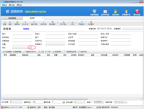 紅管家送貨單軟件、紅管家倉庫管理軟件和亞拓管理軟件單據中的擴展信息及備注等都可設置取值方式,都可以通過彈出窗口輸入的方式進行錄入信息。當錄入的備注或者擴展信息文本內容比較多時,由于界面有限,直接錄入窗口無法顯示全部的錄入信息,我們可以設置該數據項的取值方式為“彈出窗口輸入”,方便錄入更多的數據內容。