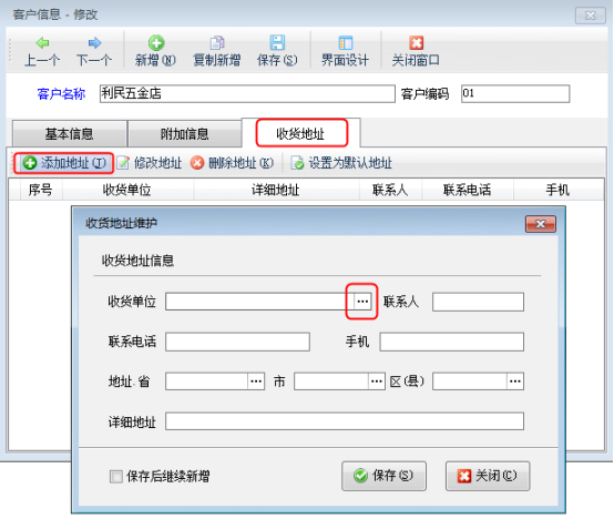 紅管家送貨單軟件、紅管家倉庫管理軟件、亞拓管理軟件開單時都可以錄入多個收貨地址,以滿足部分客戶有多個收貨地址的情況。下面我們以紅管家送貨單軟件為例介紹一下錄入多個收貨地址的具體的操作步驟。