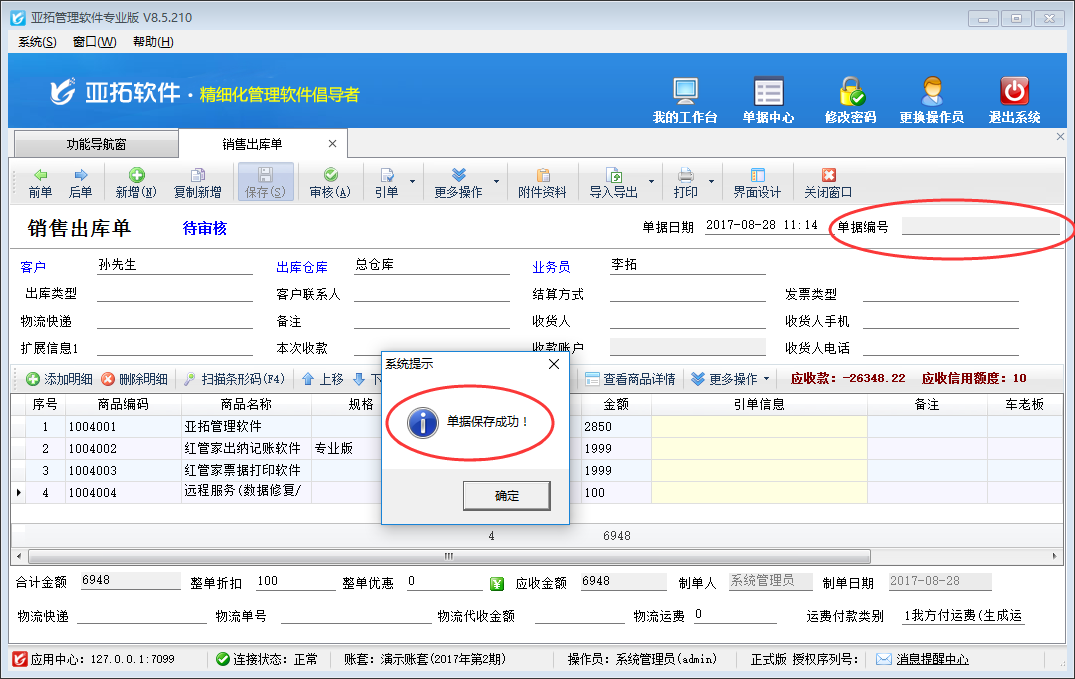 歡迎免費下載試用這款可以設置單據保存或者審核時生成單據編號的進銷存管理軟件:亞拓管理軟件。
