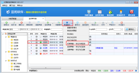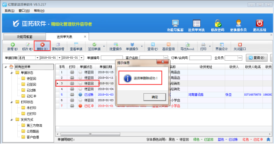 紅管家送貨單中內(nèi)置了一個簡單的流程:待簽回(新開單)-》已簽回(業(yè)務(wù)員送貨回來或者客戶已簽收快遞)-》已過賬(財務(wù)確認已收到貨款),用戶可以單據(jù)變化選擇標記單據(jù)狀態(tài),有時候會遇到需要刪除已簽回單據(jù)的情況。