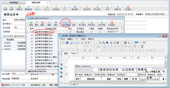 打開一個已保存的銷售出庫單單據(jù),然后在單據(jù)界面點(diǎn)擊“打印”—“打印格式設(shè)計(jì)”按鈕,進(jìn)入“銷售出庫單打印格式設(shè)計(jì)”界面,選擇需要調(diào)整的打印格式模版(B03),然后點(diǎn)擊“設(shè)計(jì)格式”按鈕進(jìn)入模版設(shè)計(jì)器界面,如下圖二所示。