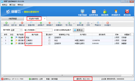 信管飛送貨單軟件、信管飛RMS、信管飛出納記賬軟件都支持設(shè)置資金賬戶的控制權(quán)限,本文以送貨單軟件為例,介紹一下如何控制操作員的資金賬戶權(quán)限?