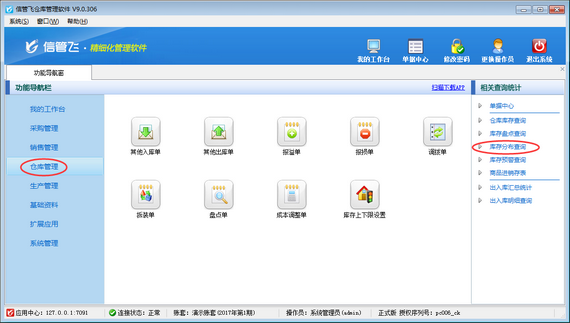 歡迎免費下載試用這款可查看商品庫存分布情況的庫存管理軟件:信管飛倉庫管理軟件。