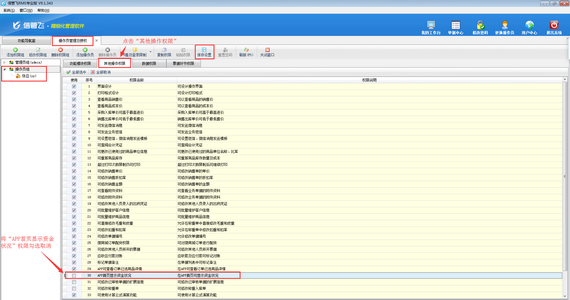在功能導航窗點擊“系統管理”—》“操作員及授權”,進入“操作員管理及授權”界面,選擇操作員賬號,然后在“其他操作權限”界面將“APP首頁顯示資金狀況”權限勾選取消,然后保存權限設置,如下圖所示,設置操作員“張亞”APP首頁不可顯示資金狀況。