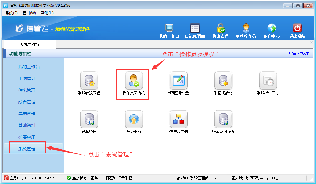 信管飛出納記賬軟件內包含豐富的記賬統計表格,如現金賬簿、銀行賬簿、資金日(月)報表、收支類別匯總表等。如果不希望員工賬號登錄后查看到這些報表,如何設置呢?本篇文章以信管飛出納記賬軟件專業版為例演示一下出納記賬軟件內如何設置操作員不可查看現金及銀行賬簿。
