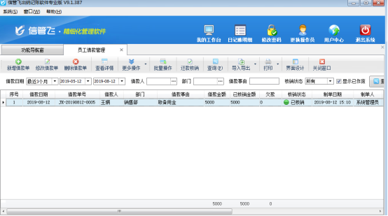 歡迎免費下載試用這款可以管理員工借款的記賬軟件:信管飛出納記賬