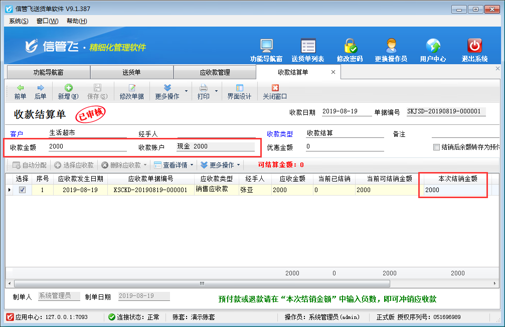 送貨單軟件中如何對應收款進行收款結算?