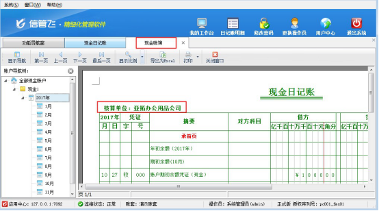 歡迎下載試用可打印現金賬簿的出納軟件:信管飛出納記賬軟件。