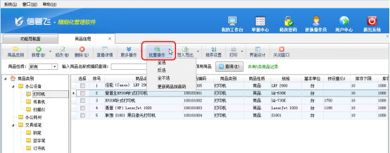 軟件支持批量操作,可以通過快捷鍵Shift或Ctrl選擇多條記錄,也可以通過軟件界面“批量操作”按鈕選擇多個商品信息,如圖4所示。