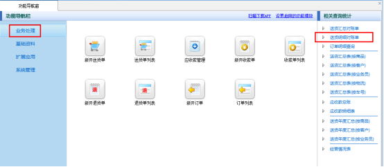 在功能導航窗點擊“業務處理”—》“送貨明細對賬單”即可打開送貨明細對賬單界面,如下圖所示: