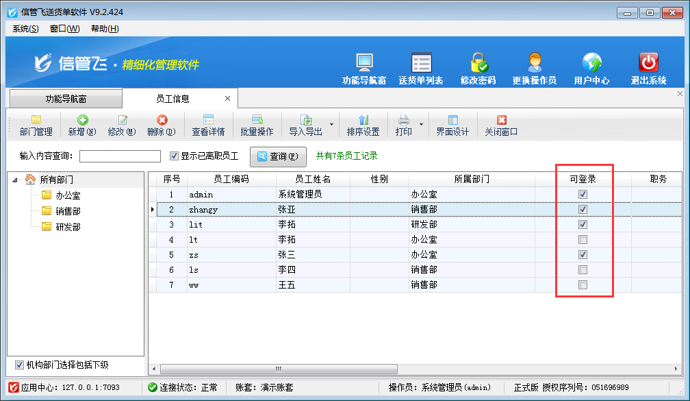 歡迎免費下載試用這款可設置多個操作員登錄送貨單打印軟件信管飛送貨單軟件