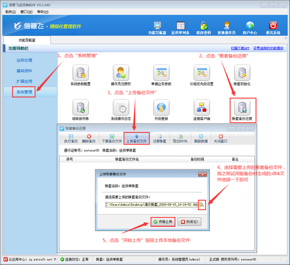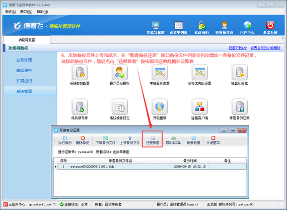 本文以信管飛送貨單軟件為例,介紹一下云賬套模式如何上傳本地試用數據備份文件,并還原本地備份數據?